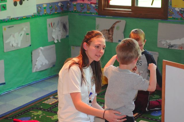 During their time at Clapp Children's Center, your child will have one-on-one activity opportunities with the residents of Breckenridge Village. Occassionally a few children will visit Toddlerville, which is our large motor playroom, with Miss Jeannie and meet with a few residents. A preplanned and developmentally appropriate activity will be implemented during the visits involving interaction between the children and the residents. The activities planned include sharing story time, creating crafts, and baking small snacks together.